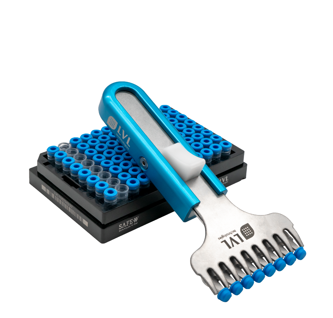 Der SAFE® Push Cap Decapper von LVL technologies bietet eine flexible und effiziente Lösung für das Handling von Probenröhrchen in Ihrem Labor. Ob bei der automatischen Prozessierbarkeit von hunderten Racks am Tag oder für das manuelle Handling einer geringeren Anzahl an Proben – die Verwendung von Cappern und Decappern erleichtert die Arbeit erheblich. Unser Sortiment umfasst verschiedene Modelle, die für unterschiedliche Anforderungen geeignet sind, darunter Versionen mit und ohne Abwurffunktion. Diese Geräte sind darauf ausgelegt, den Arbeitsablauf zu optimieren und das Risiko von Kontaminationen zu minimieren, indem sie eine sichere und zuverlässige Handhabung der Röhrchen gewährleisten.