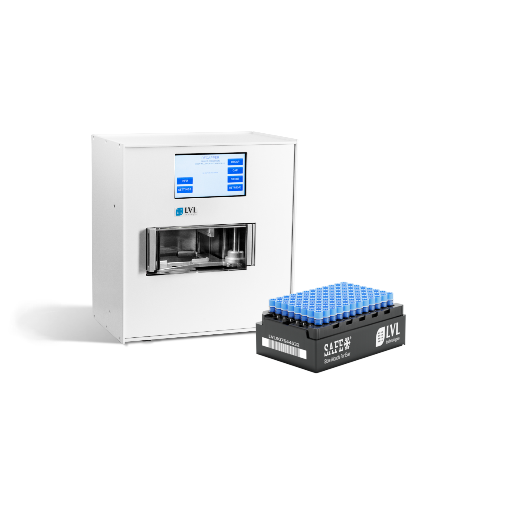Der SAFE® CAP 96 Kanal IT Version Capper/Decapper von LVL technologies bietet eine präzise Lösung für das gleichzeitige Verschließen und Öffnen von bis zu 96 Röhrchenverschlüssen mit Innengewinde. Dieses Gerät ist ideal für Labore, die eine schnelle und zuverlässige Verarbeitung von Verschlüssen benötigen.