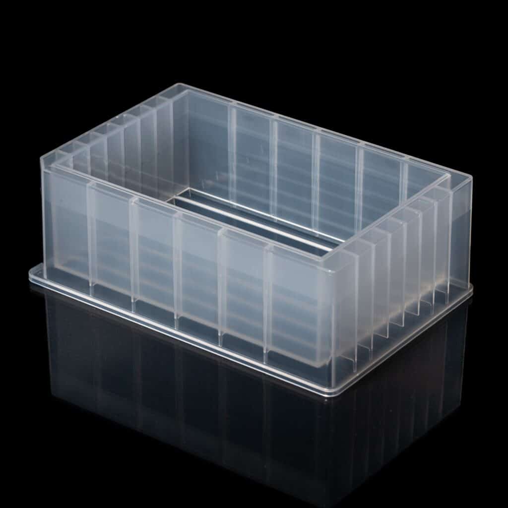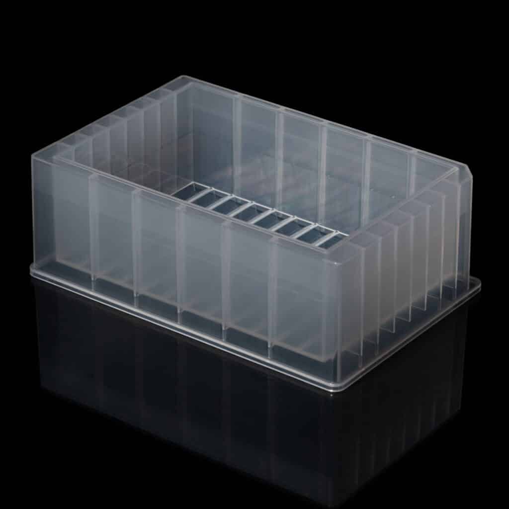 Hergestellt aus chemisch- und hitzebeständigem Polypropylen (PP) sind unsere Reservoirs autoklavierbar und können auch einer Gammabestrahlung unterzogen werden, um höchste Hygienestandards zu gewährleisten. Die Möglichkeit zur Barcode-Beklebung erleichtert die Rückverfolgbarkeit und Organisation Ihrer Proben.
