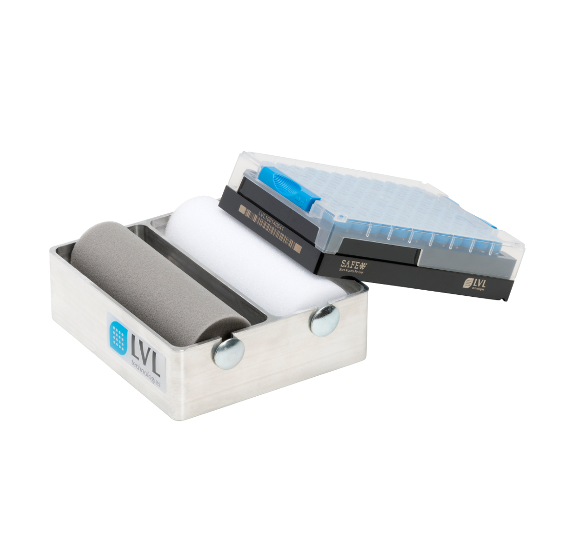 For this need, LVL has developed a fully automatic tube laser marker. The TLM 864 can automatically laser-mark SAFE® tubes in SBS 96, SBS 48, and SBS 24 formats from two sides and link the information in a database with the 2D code previously lasered during production. Up to 500 tubes per hour can be coded from nine SBS/ANSI positions.