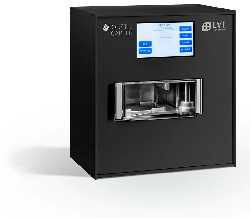 The SAFE® Acoustic Capper from LVL technologies offers a fully automated solution for the simultaneous capping and opening of up to 96 tube caps. This device is ideal for laboratories that need fast and reliable capping and decapping.