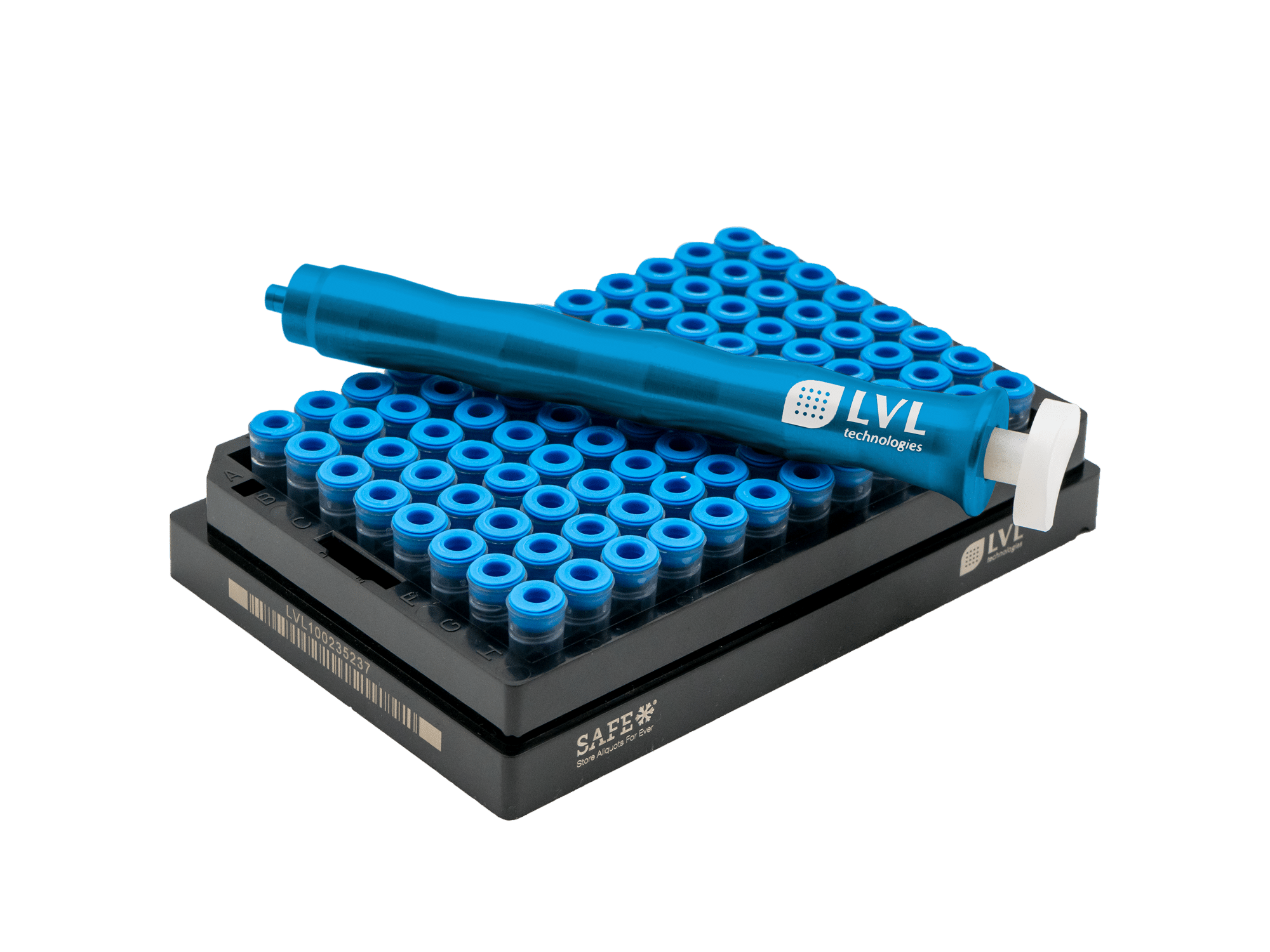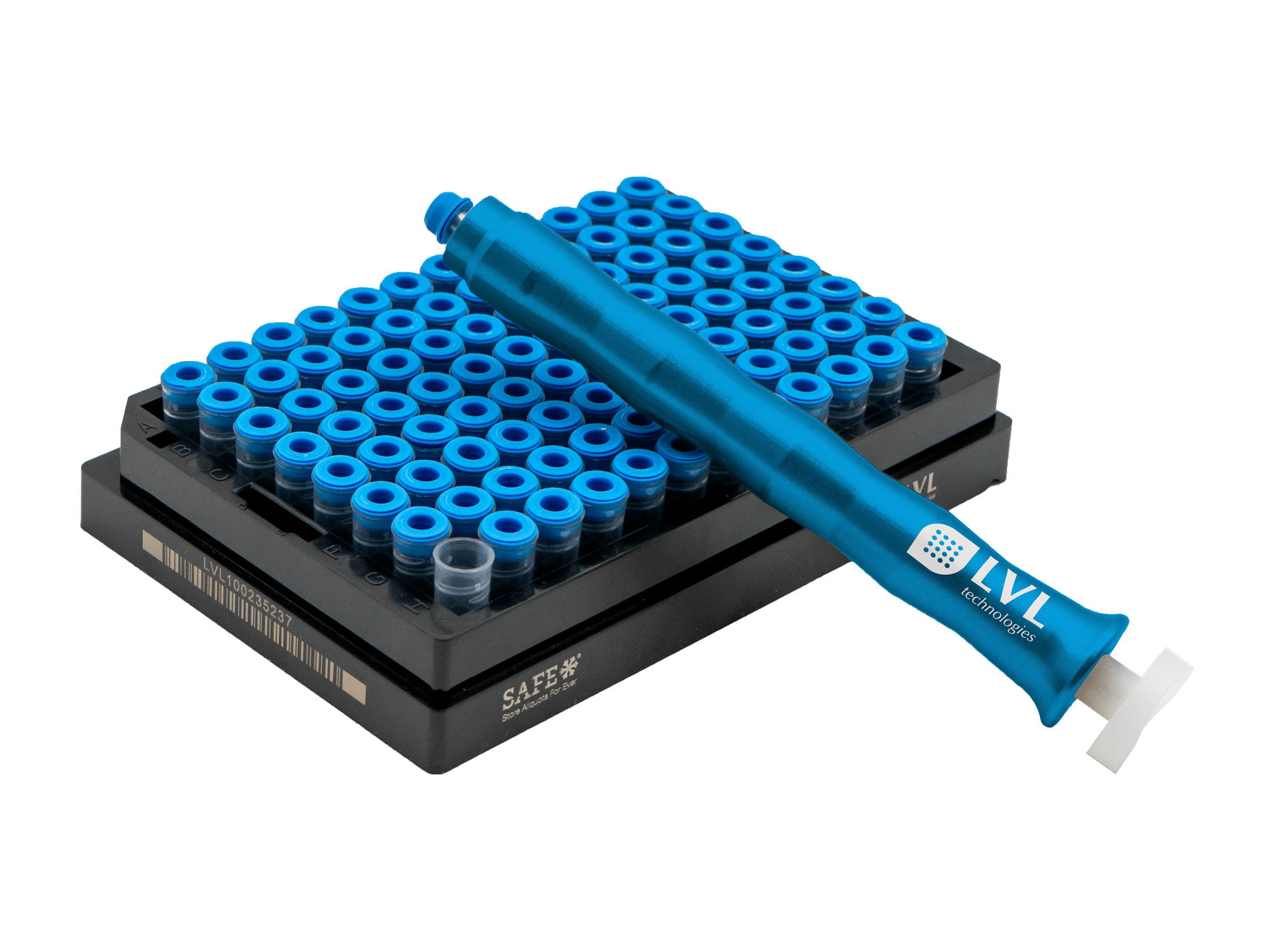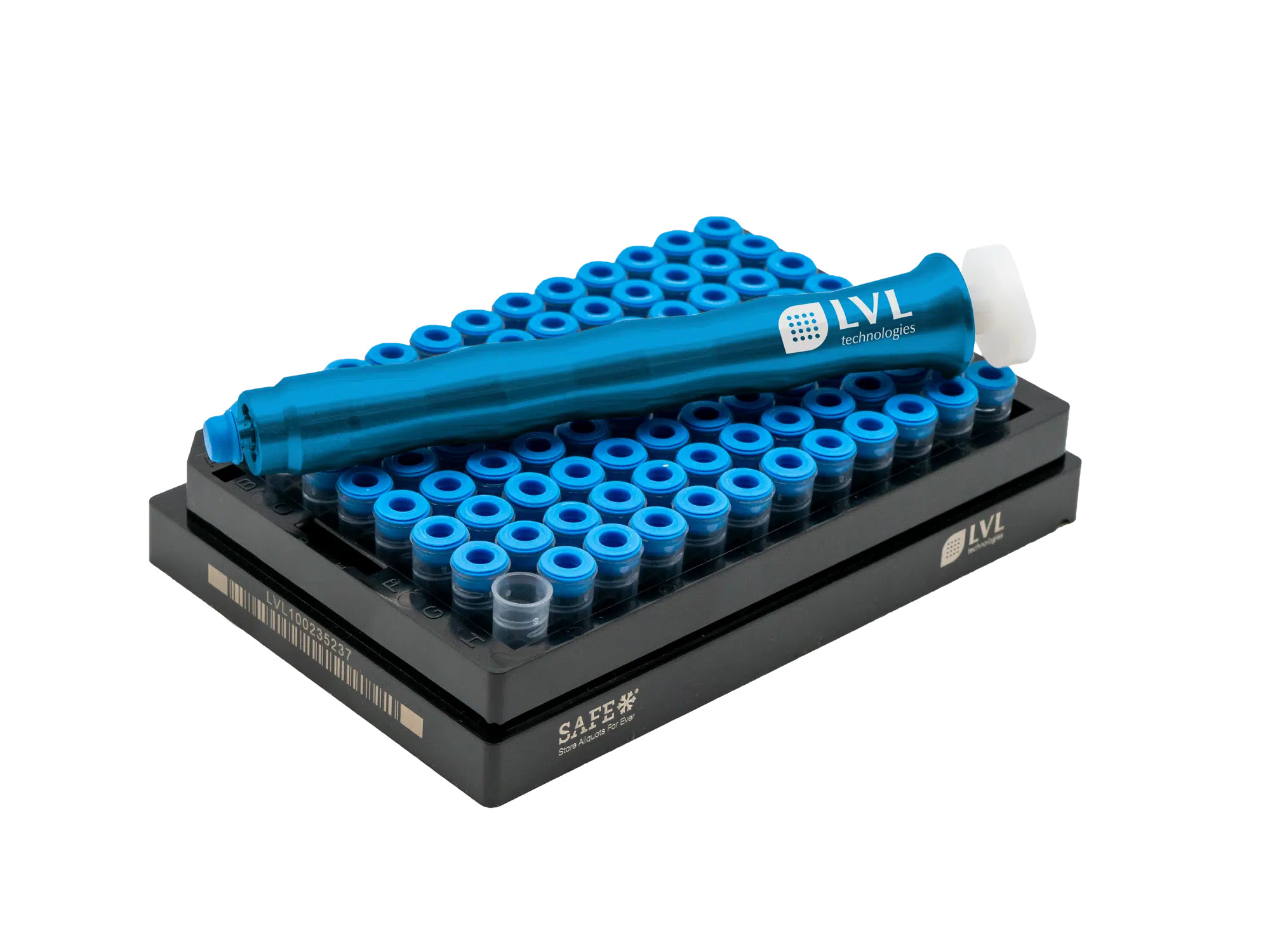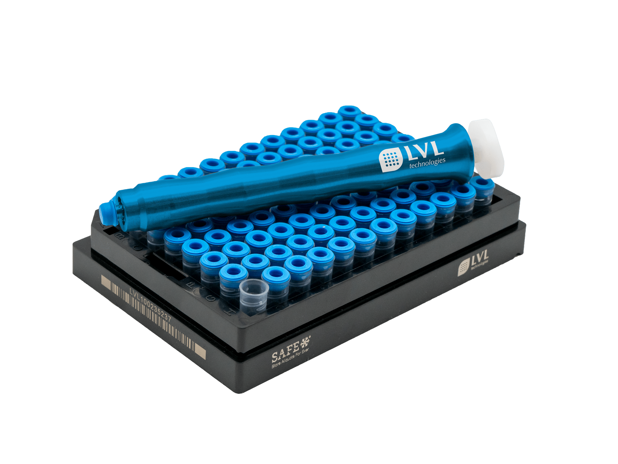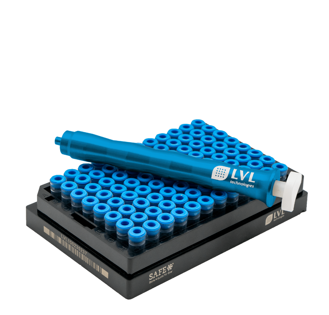 For this need, LVL has developed a fully automatic tube laser marker. The TLM 864 can automatically laser-mark SAFE® tubes in SBS 96, SBS 48, and SBS 24 formats from two sides and link the information in a database with the 2D code previously lasered during production. Up to 500 tubes per hour can be coded from nine SBS/ANSI positions.