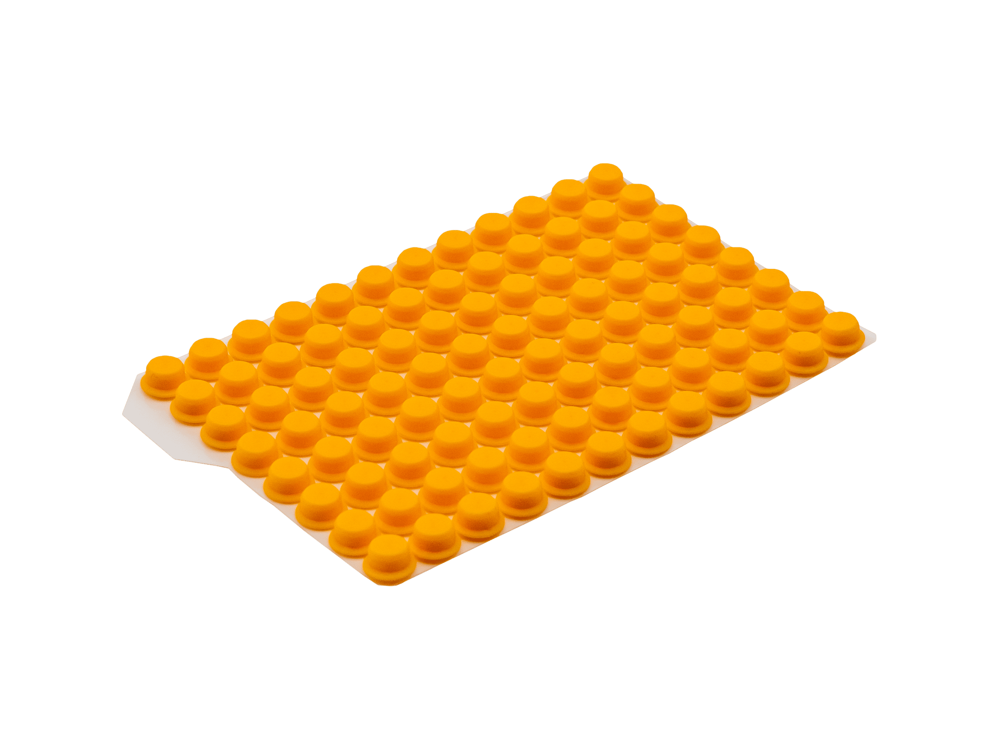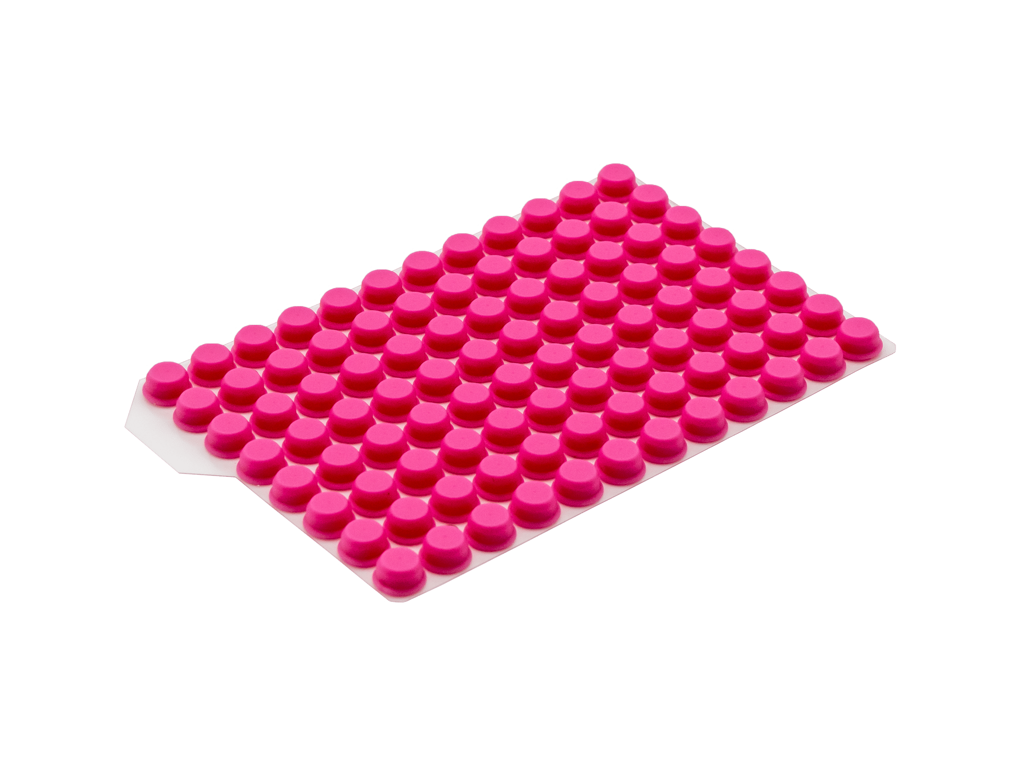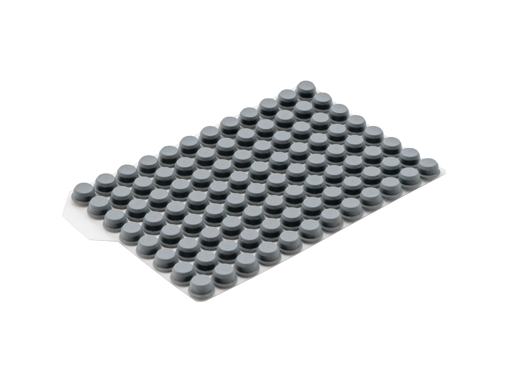Materials and Features: The Push Caps are made from thermoplastic elastomer (TPE) and are easy to handle. By pressing the mat once, you can simultaneously seal 96 tubes individually. The Push Caps are also available in strips of 8 and 12.