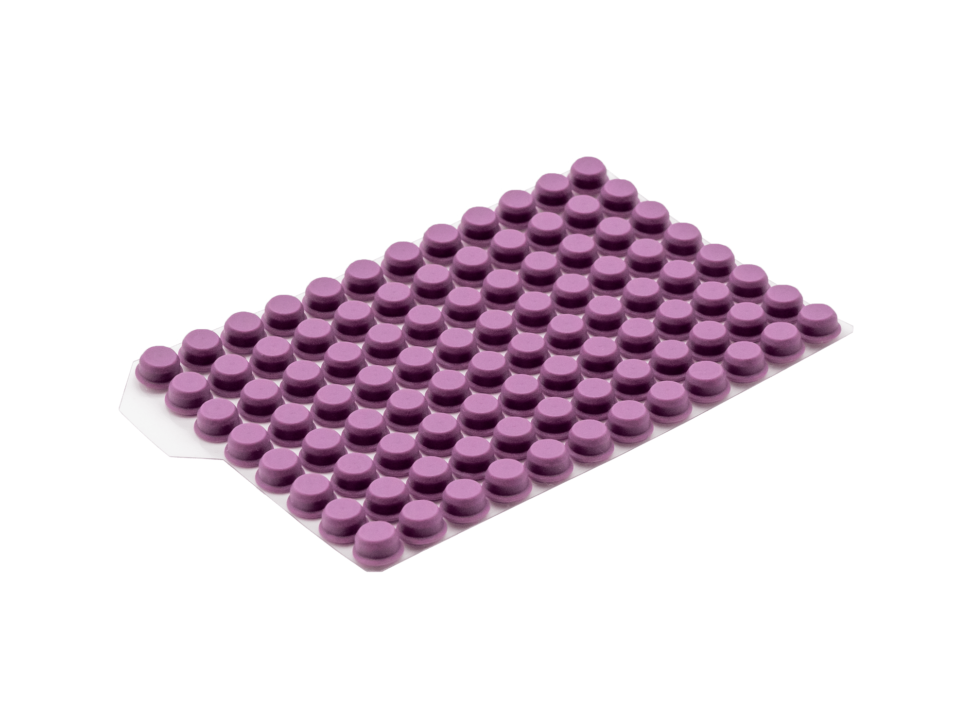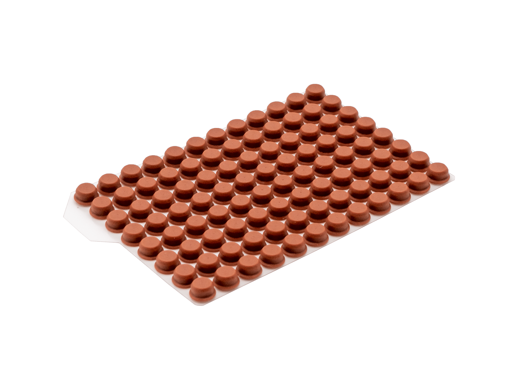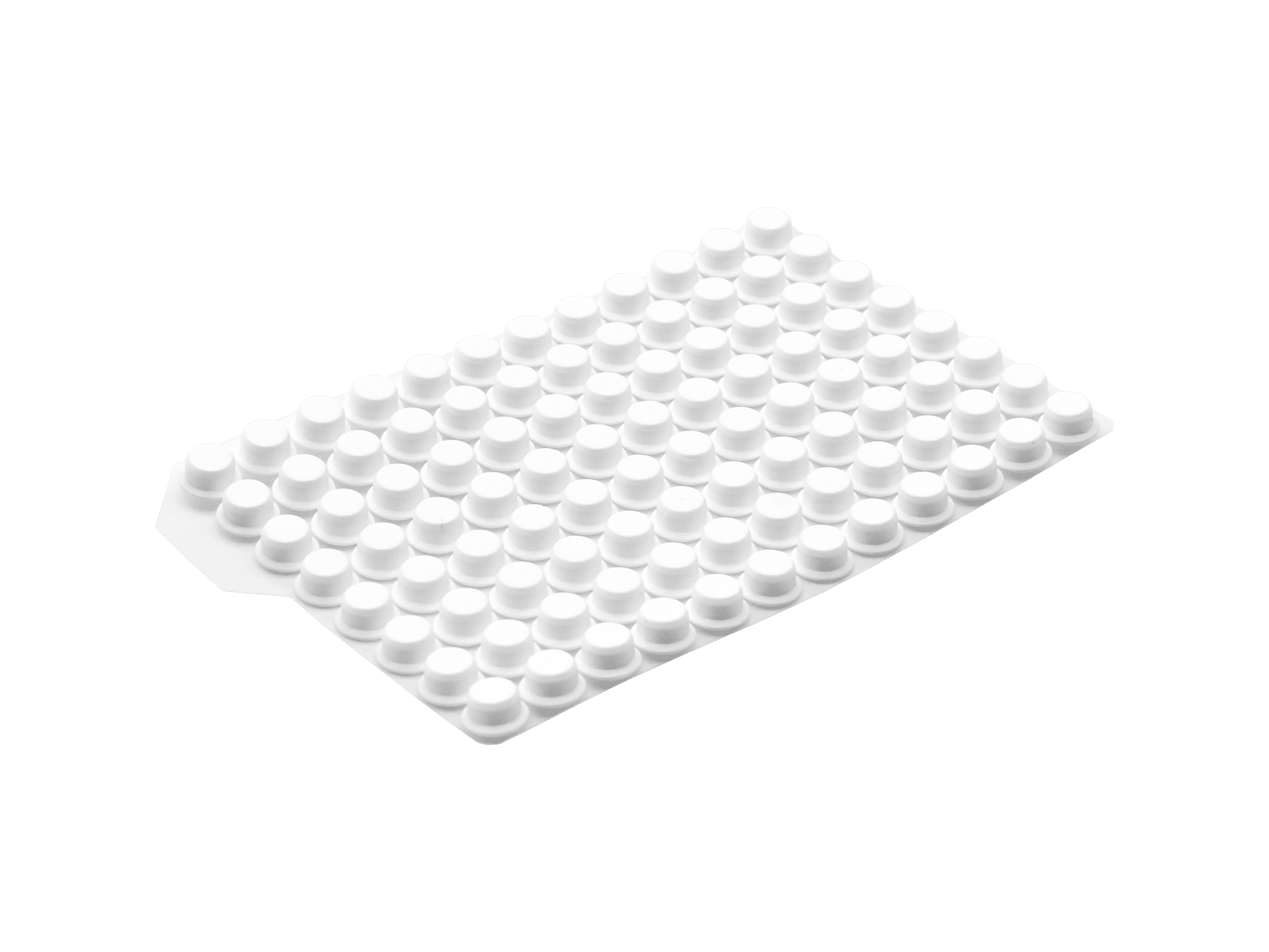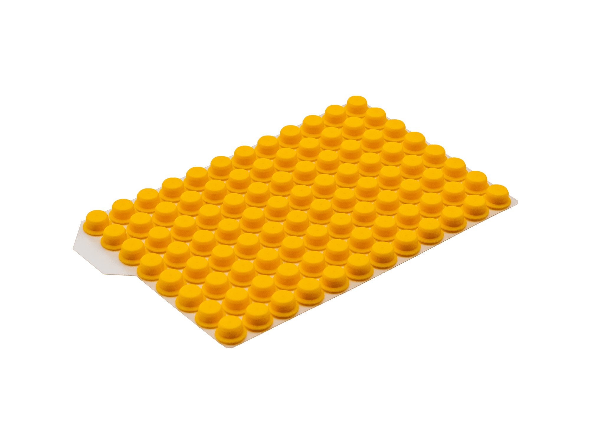 Materials and Features: The Push Caps are made from thermoplastic elastomer (TPE) and are easy to handle. By pressing the mat once, you can simultaneously seal 96 tubes individually. The Push Caps are also available in strips of 8 and 12.