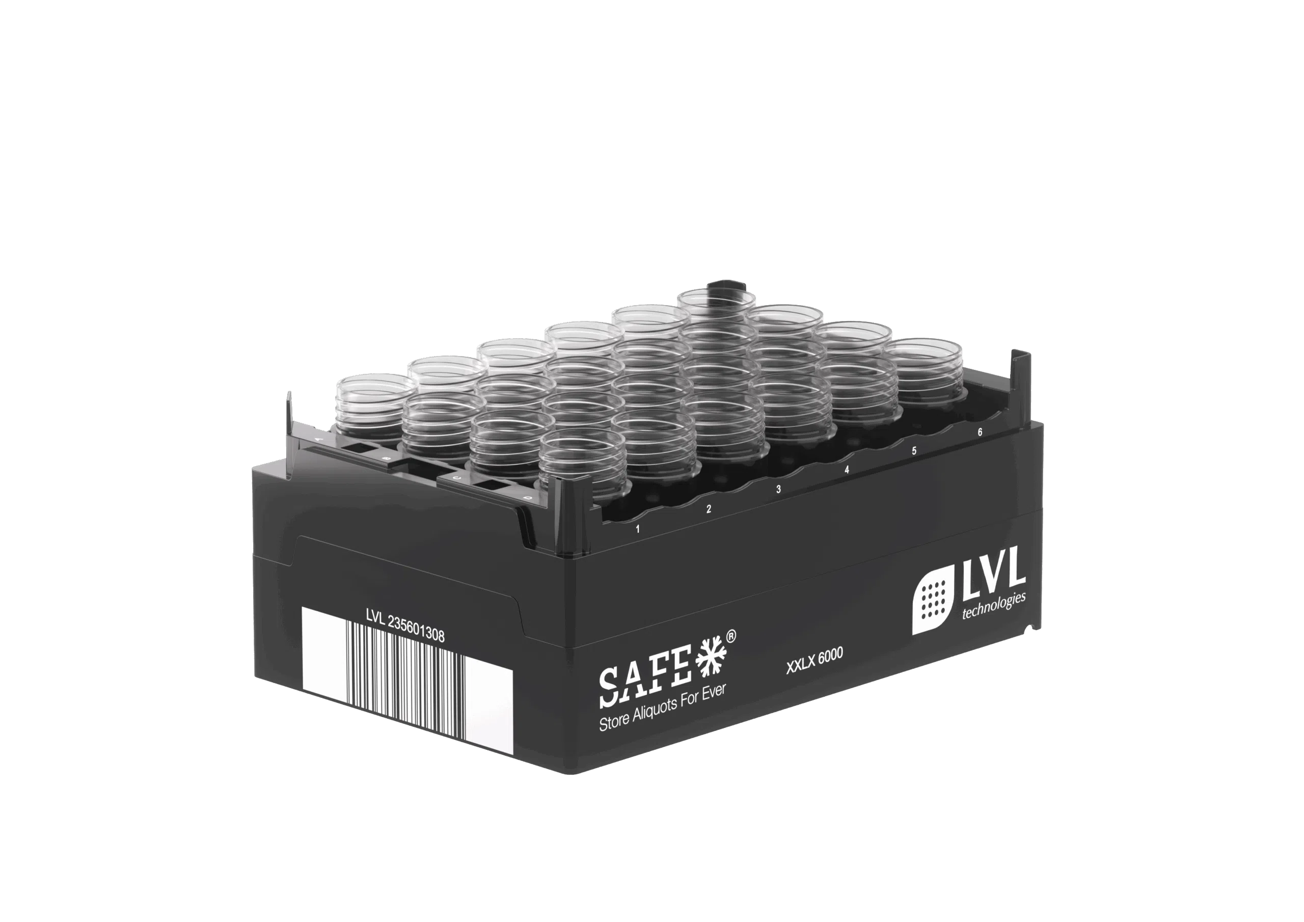The SAFE® XXLX6000 sample tubes from LVL technologies offer maximum storage capacity for your samples. With a usable volume of 6000 µl, these tubes are ideal for extensive laboratory applications. The 2D-coded tubes ensure easy identification and traceability, while the robust design allows for safe storage in ultra-low temperature freezers.