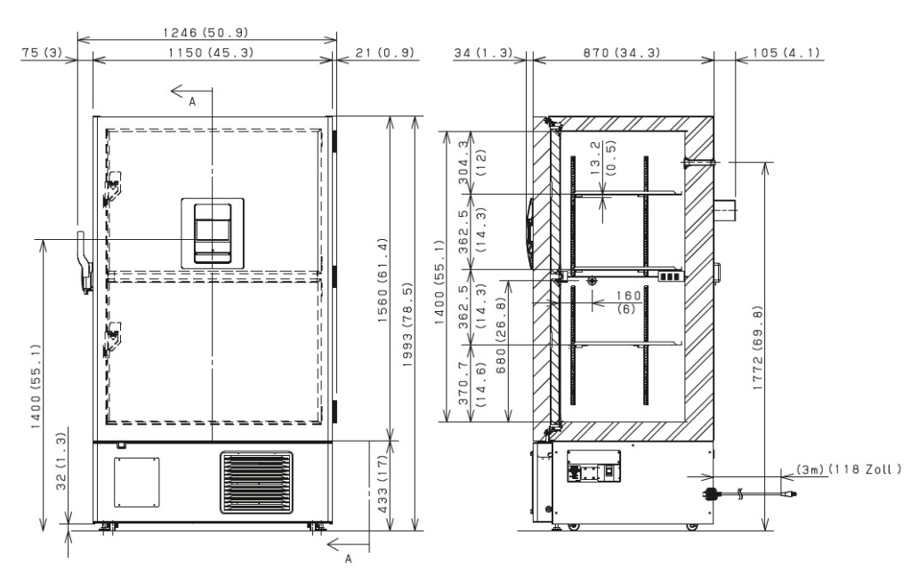 | Innenabmessungen (B x T x H) | 1010 x 600 x 1400 mm |