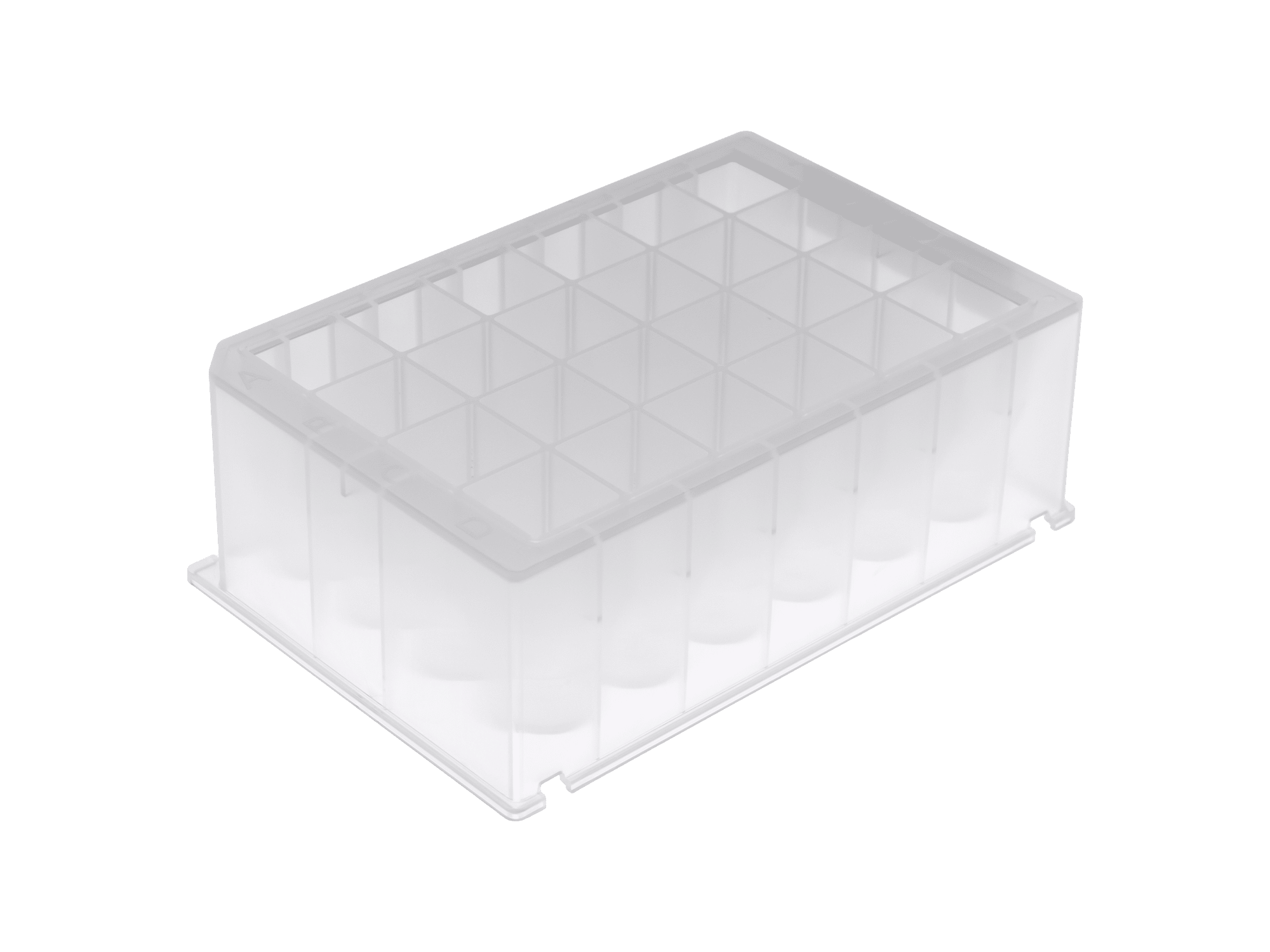 - Die SBS Standard Mikrotestplattenform ist mit einem Arbeitsvolumen von 10,0 ml pro Well erhältlich.