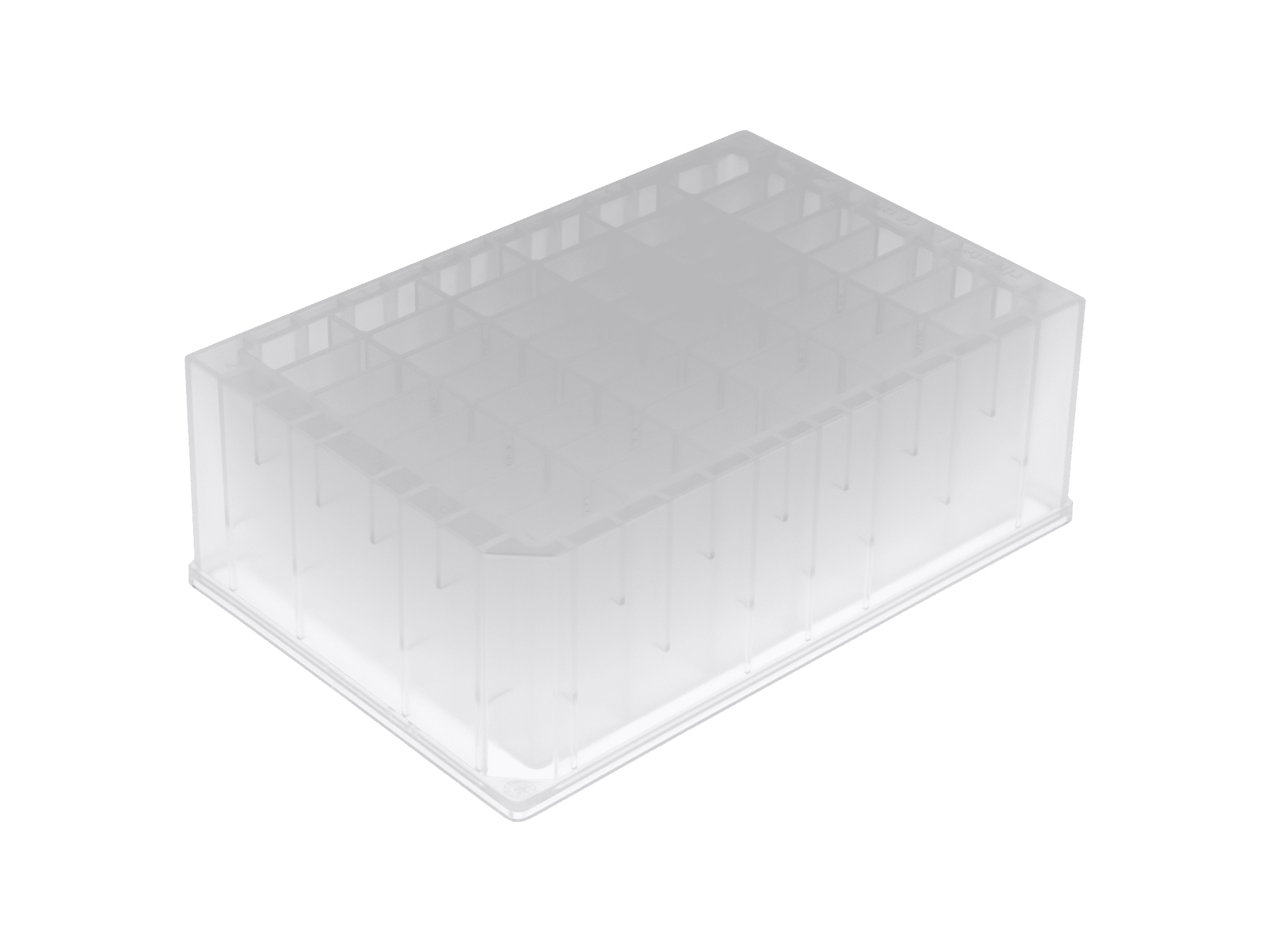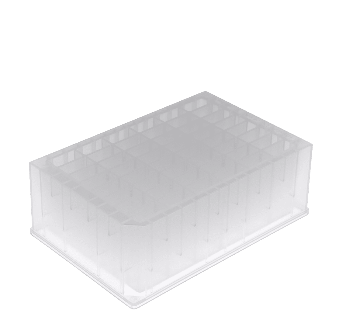 - Die 8×6 Wells sind mit alphanumerischem Code versehen. Sie sind bei 121°C, 20 Min autoklavierbar und temperaturbeständig bis -80°C