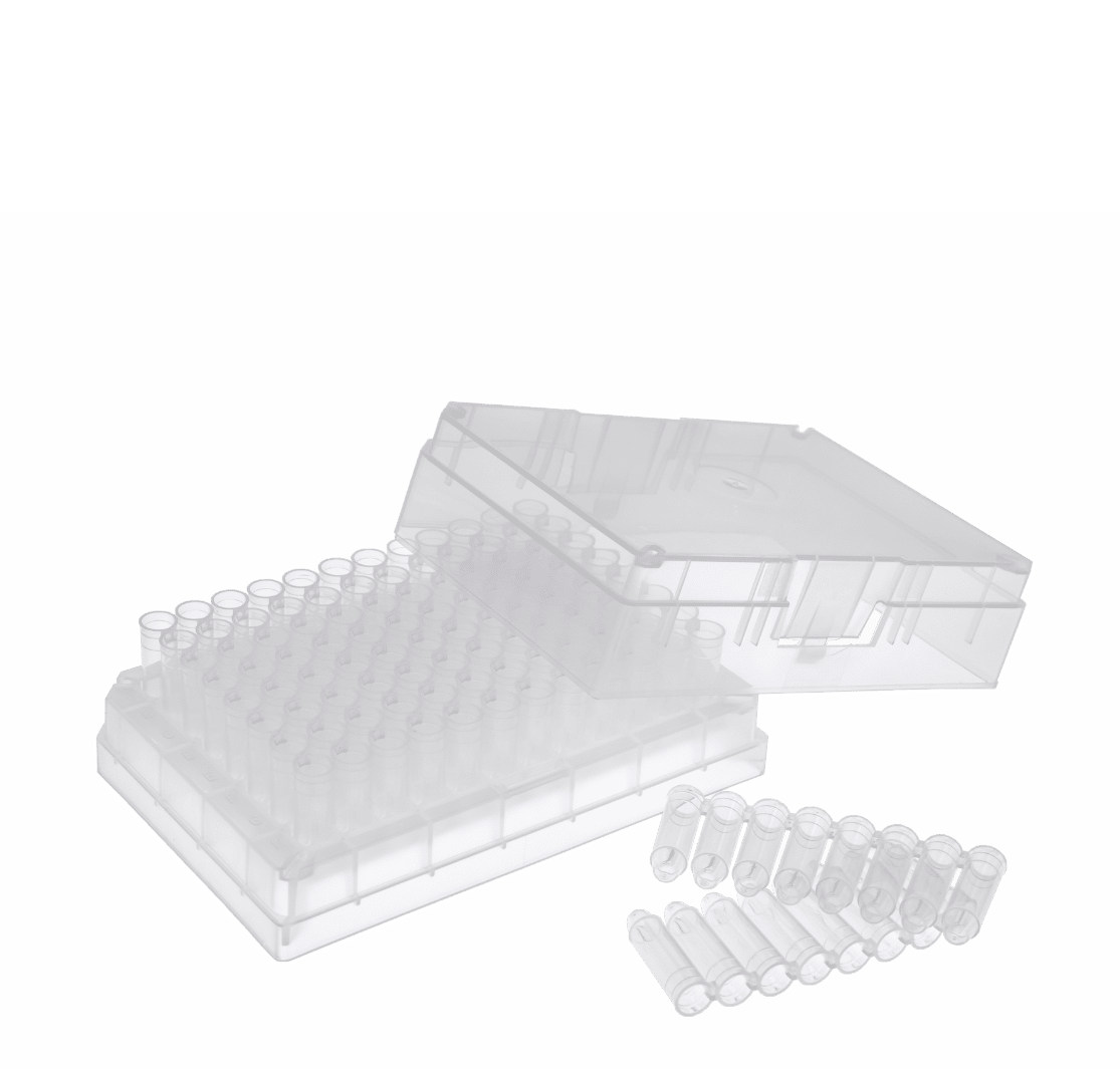 - Mit codierten und einzeln entnehmbaren Röhrchen (A1-H12)