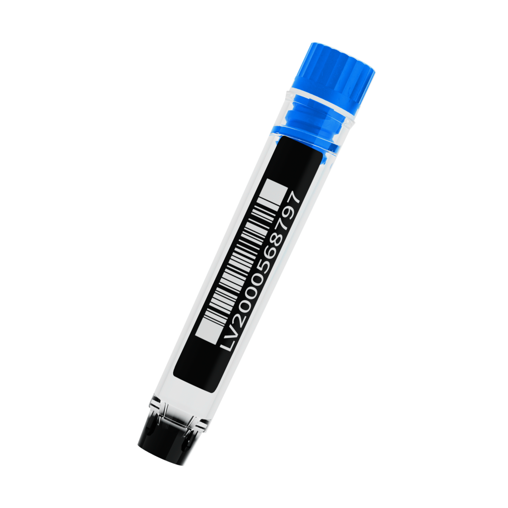 Zusätzlich gibt es ausreichend Platz für individuelle Codierungen, die spezifische Informationen zu Ihrem Labor oder den Proben enthalten können. Die seitliche Freifläche in Schwarz wird standardmäßig mit dem LVL-Logo lasert, kann jedoch nach Absprache kostenlos angepasst werden.